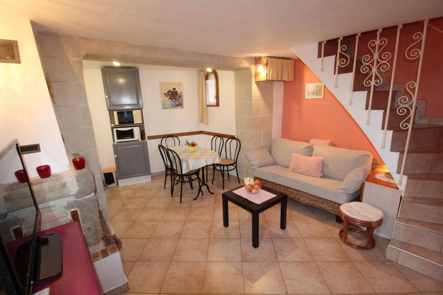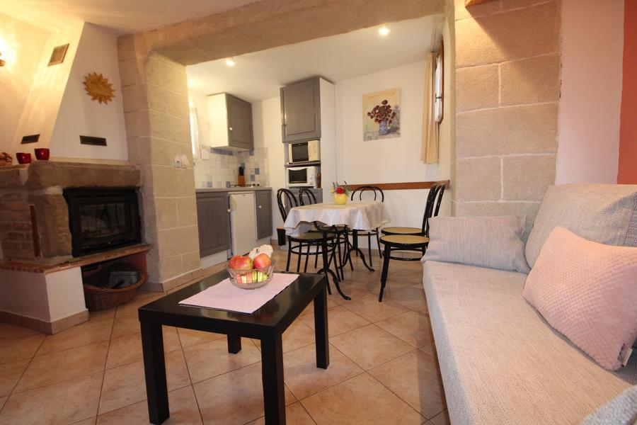 Séjour/c.cuisine, coin salon, 1ch(1 lit 2 pers), s.d'eau, wc, ch.électrique, cheminée insert. Terrasse couverte, jardin clos. Visite des vergers sur demande, dégustation. Parking privé. Possibilité gym douce. Proche de la maison du propriétaire. Tous services accessibles à pied au village de La Voulte à 1 km. A voir : village classé de Beauchastel, la vallée de l'Eyrieux et ses coins de baignade, le train touristique.