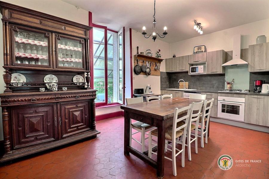 Salle à manger donnant sur le salon et la terrasse