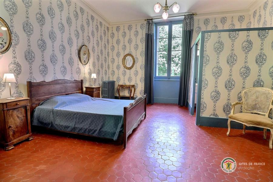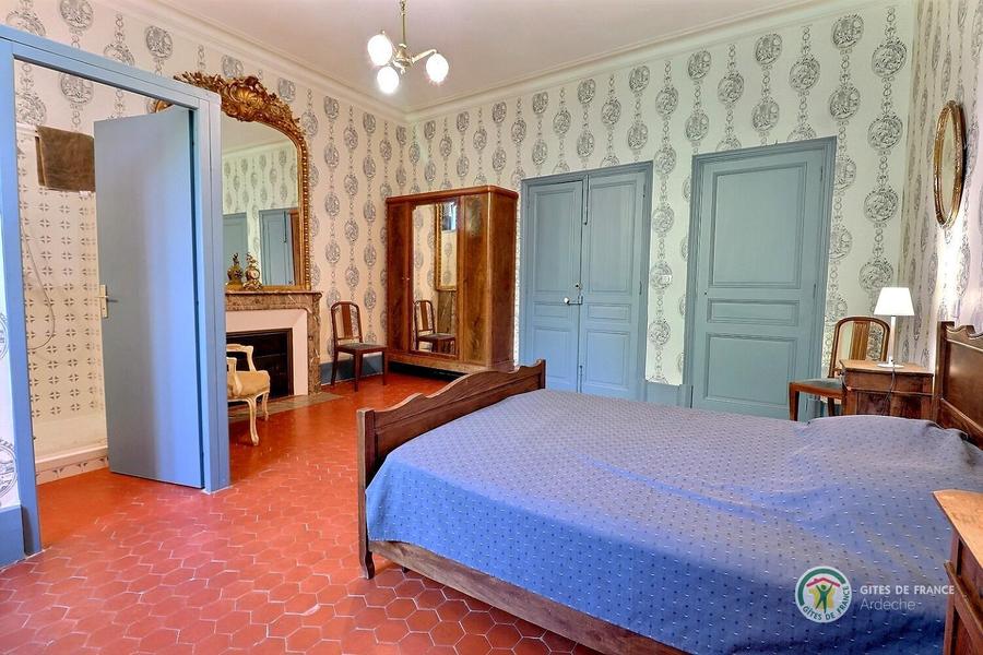 Chambre bleue avec un lit en 140 et une salle d'eau privative