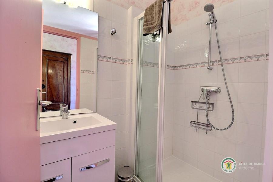 Salle d'eau privative de la chambre rose avec douche et vasque