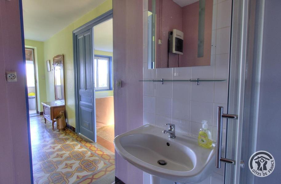 Bienvenue au Gîte "Les Marcellins" à Villié-Morgon dans le Beaujolais, chez le vigneron - RHONE : le lavabo dans la salle d'eau.