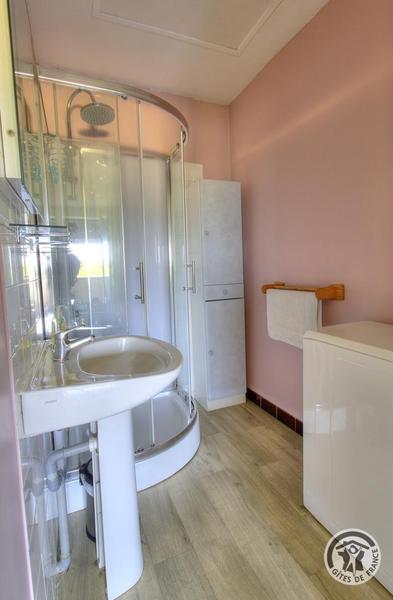 Bienvenue au Gîte "Les Marcellins" à Villié-Morgon dans le Beaujolais, chez le vigneron - RHONE : la salle d'eau avec lave-linge.