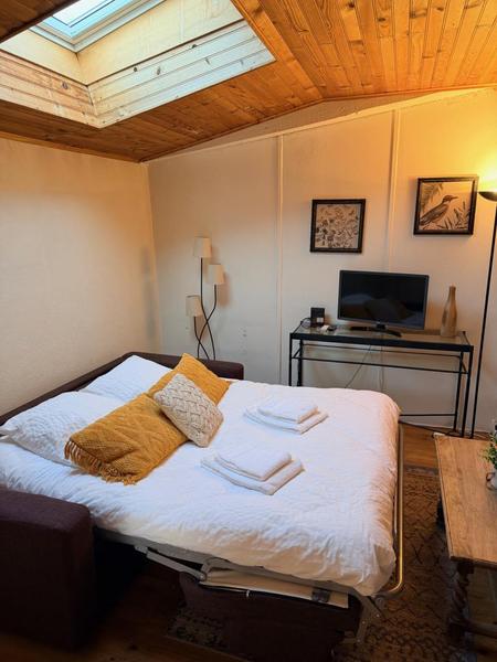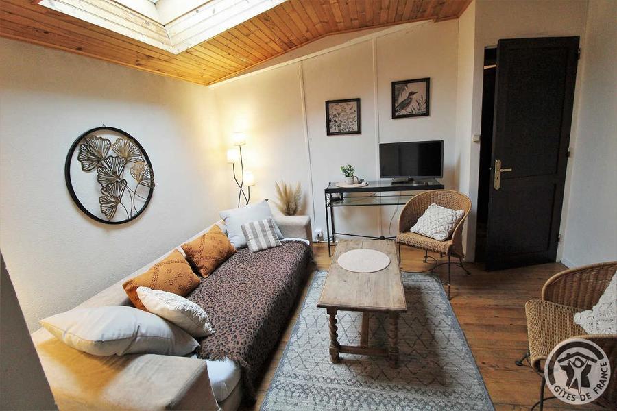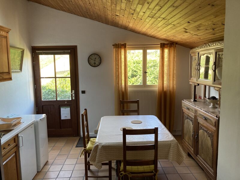 Dans un site entouré de vignes, ce gîte est situé au nord de Lyon est idéal pour un déplacement professionnel ou un séjour de découverte en Beaujolais des Pierres Dorées. Le Domaine Albert est un vaste domaine viticole (un bel ensemble de caractère en pierres) comportant 3 gîtes mitoyens et 4 chambres d'hôtes ainsi qu'une salle de réception de 200 m2. Le propriétaire, viticulteur, habite sur place et pourra vous proposer les vins de sa propriété aux hôtes intéressés.. À l'étage (accès par un escalier extérieur desservant 2 gîtes), retrouvez un séjour avec coin-cuisine, salon avec 1 lit 1 personne, 1 chambre (2 lits 1 personne), salle d'eau et WC indépendant. Chauffage central. À l'extérieur : petite terrasse privative avec jolie vue sur les vignes, terrain non clos commun, salon de jardin. Barbecue commun (au charbon de bois). Un parking est disponible, gare au moutons sur la propriété ! Terrain de boules et baby-foot à disposition. Location fréquente de la salle de réception (caveau) pour mariages (musique). Location de draps et linge de toilette sur demande: 12 €/personne.