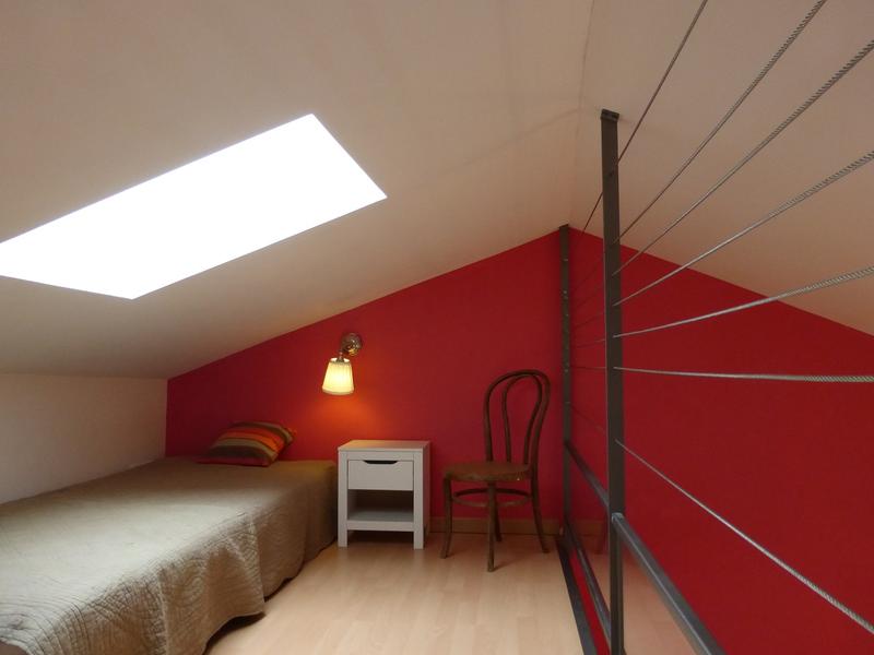 Gîte du Pré Carra - 9 personnes à MONTMELAS/ST SORLIN dans le Beaujolais - Rhône : le couchage en mezzanine pour 1 personne dans la Chambre de 3 personnes.