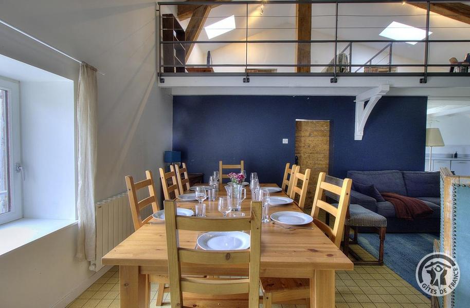 Gîte du Pré Carra - 9 personnes à MONTMELAS/ST SORLIN dans le Beaujolais - Rhône : le coin repas et mezzanine.