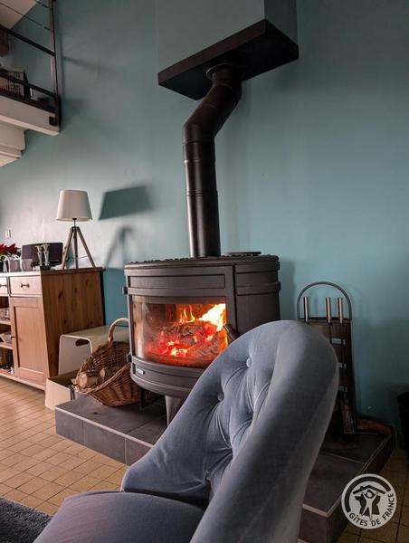 Gîte du Pré Carra - 9 personnes à MONTMELAS/ST SORLIN dans le Beaujolais - Rhône : le confort du poêle à bois en hiver.