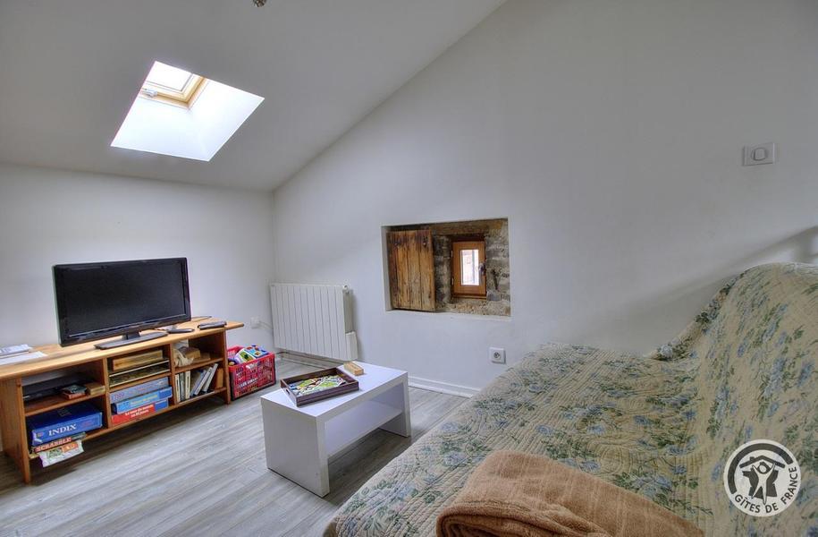 Gîte du Pré Carra - 9 personnes à MONTMELAS/ST SORLIN dans le Beaujolais - Rhône : TV sur la mezzanine.
