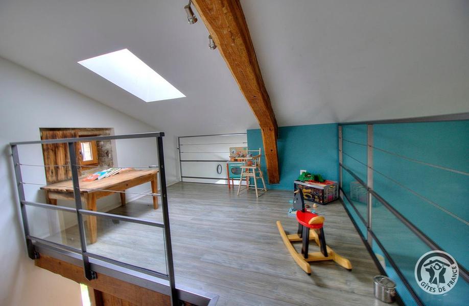 Gîte du Pré Carra - 9 personnes à MONTMELAS/ST SORLIN dans le Beaujolais - Rhône : Coin jeux sur la mezzanine.