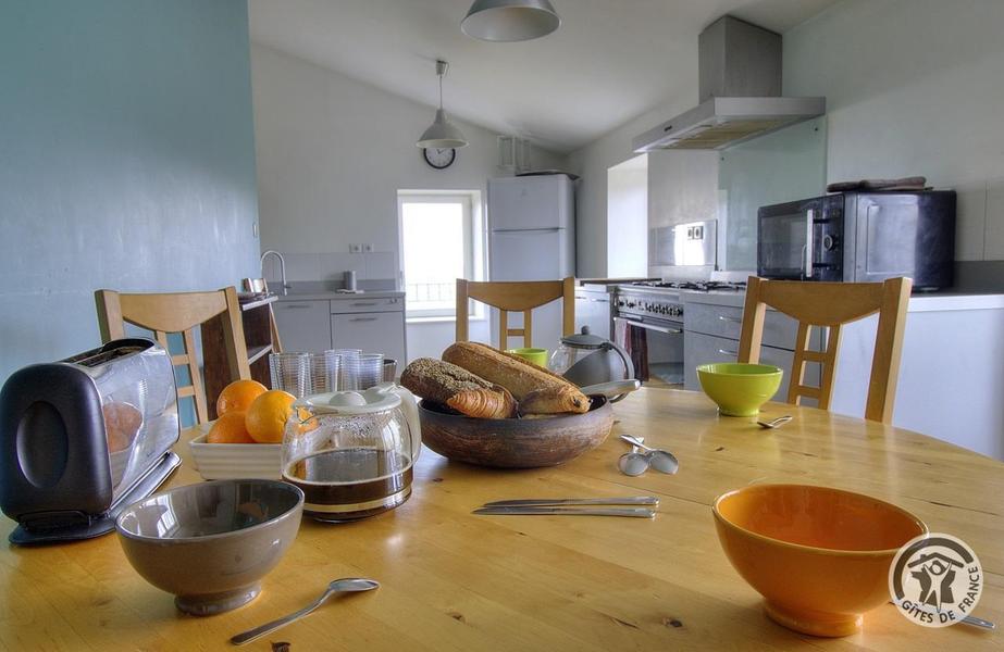 Gîte du Pré Carra - 9 personnes à MONTMELAS/ST SORLIN dans le Beaujolais - Rhône : le coin repas dans la cuisine.