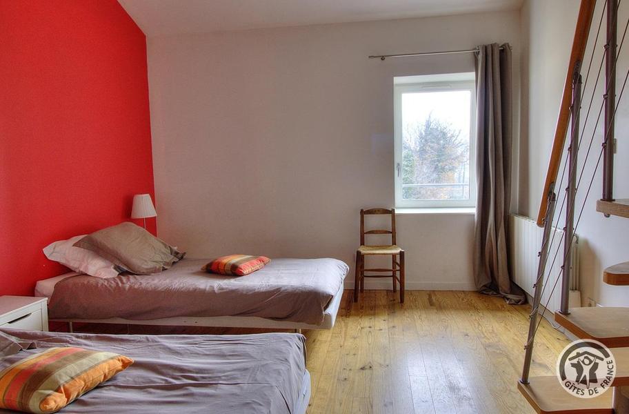 Gîte du Pré Carra - 9 personnes à MONTMELAS/ST SORLIN dans le Beaujolais - Rhône : la Chambre pour 3 personnes - 2 lits simples en bas et un couchage en mezzanine.
