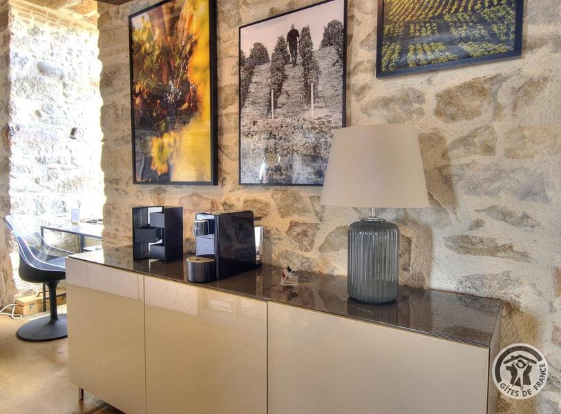 Grand Gîte "Le Vigneron" - 15 personnes - Château des Tours à St Etienne-La-Varenne dans le Beaujolais - Rhône : meuble dans le séjour/salon.