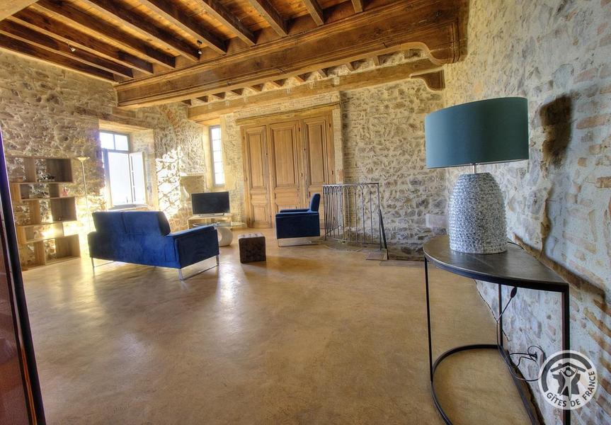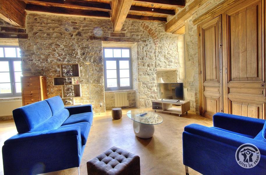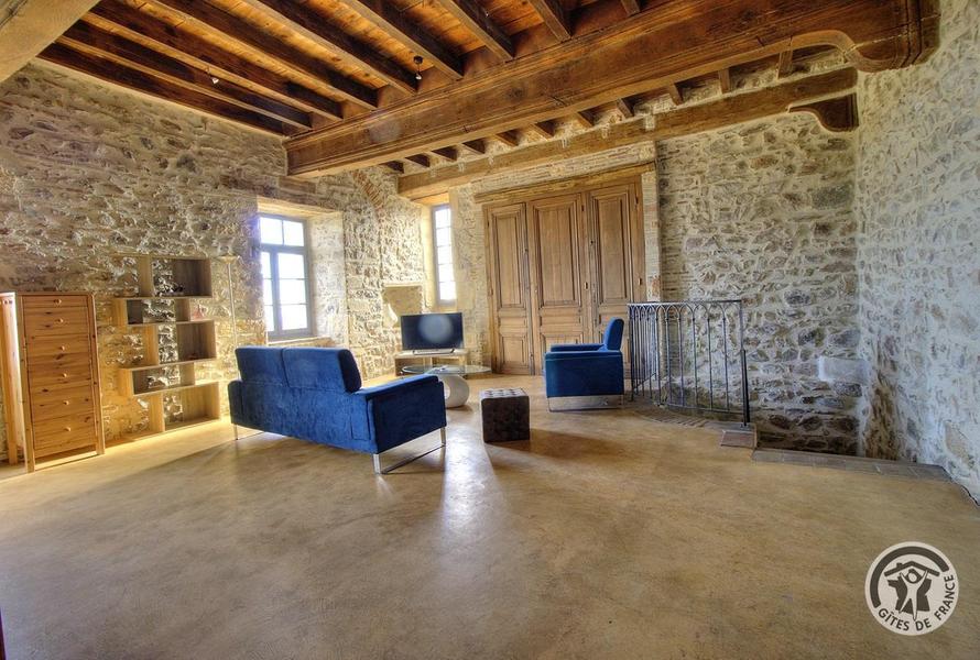 Grand Gîte "Le Vigneron" - 15 personnes - Château des Tours à St Etienne-La-Varenne dans le Beaujolais - Rhône : le salon au 1er étage.