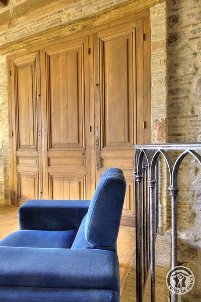Grand Gîte "Le Vigneron" - 15 personnes - Château des Tours à St Etienne-La-Varenne dans le Beaujolais - Rhône : placard mural et fauteuil dans le salon à l'étage.