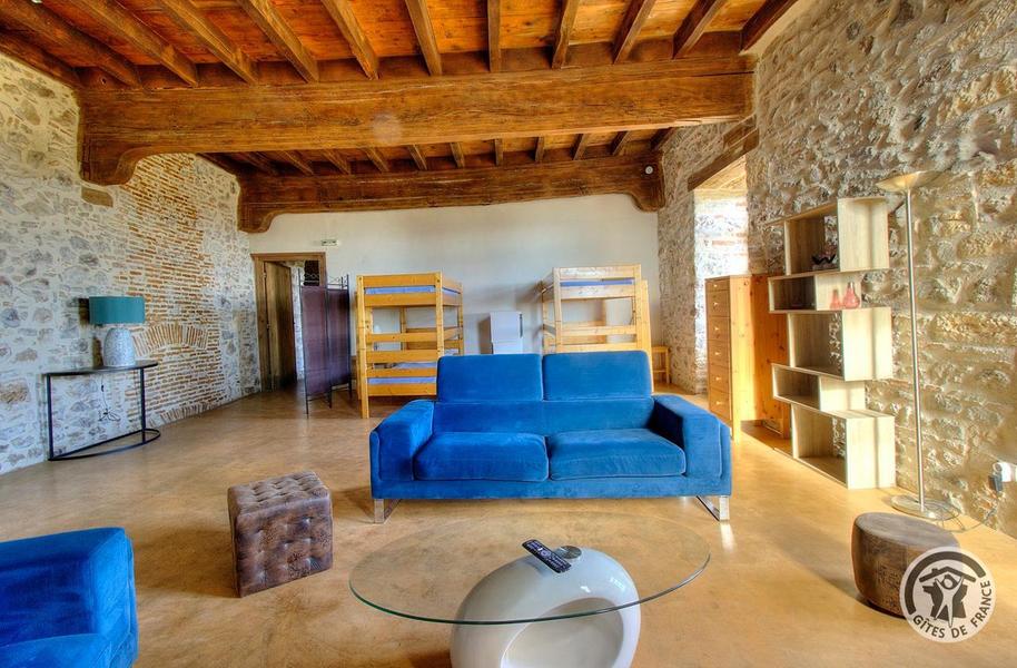 Grand Gîte "Le Vigneron" - 15 personnes - Château des Tours à St Etienne-La-Varenne dans le Beaujolais - Rhône : coin salon et espace nuit (1er étage).