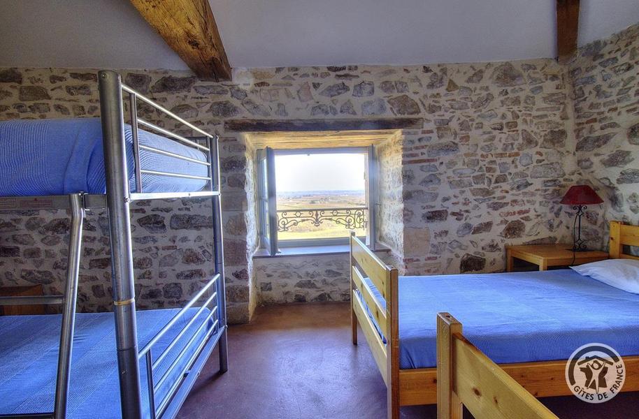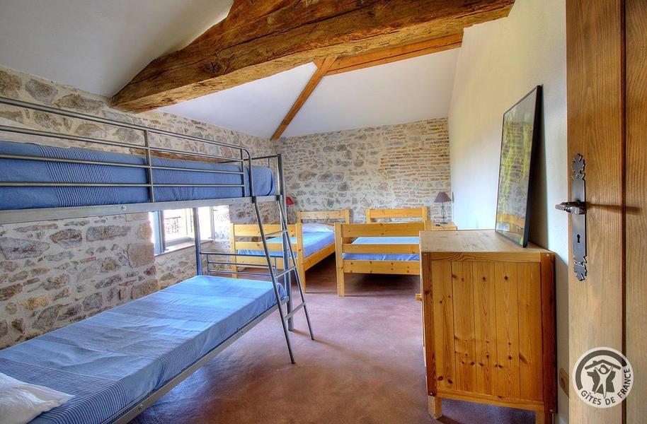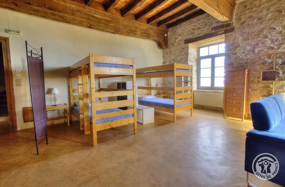 Grand Gîte "Le Vigneron" - 15 personnes - Château des Tours à St Etienne-La-Varenne dans le Beaujolais - Rhône : la chambre pour 4 personnes (2 lits simples + 1 lit superposé) au 2ème étage.