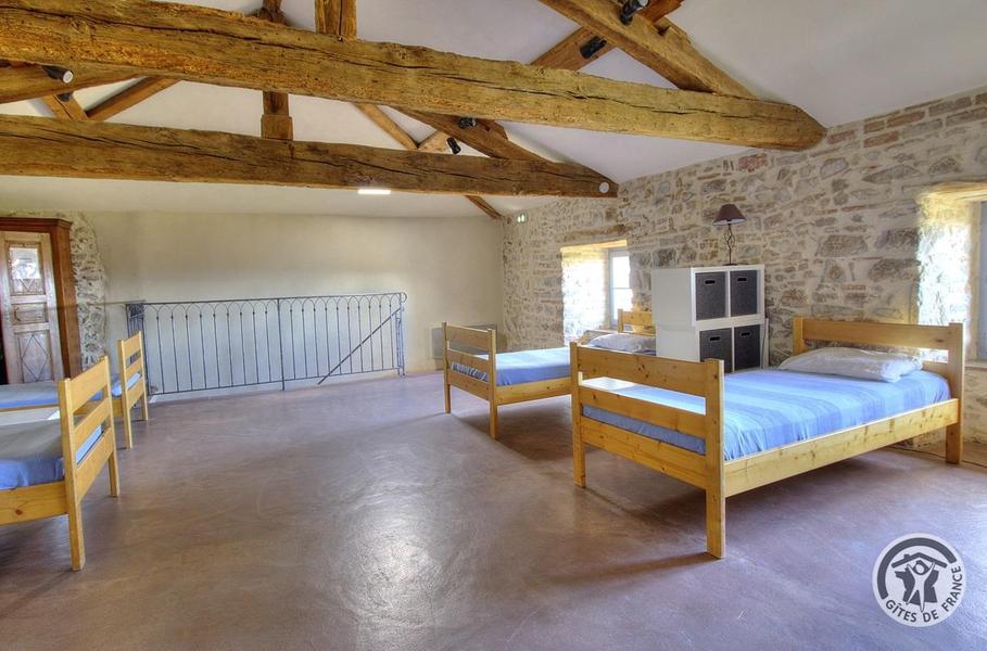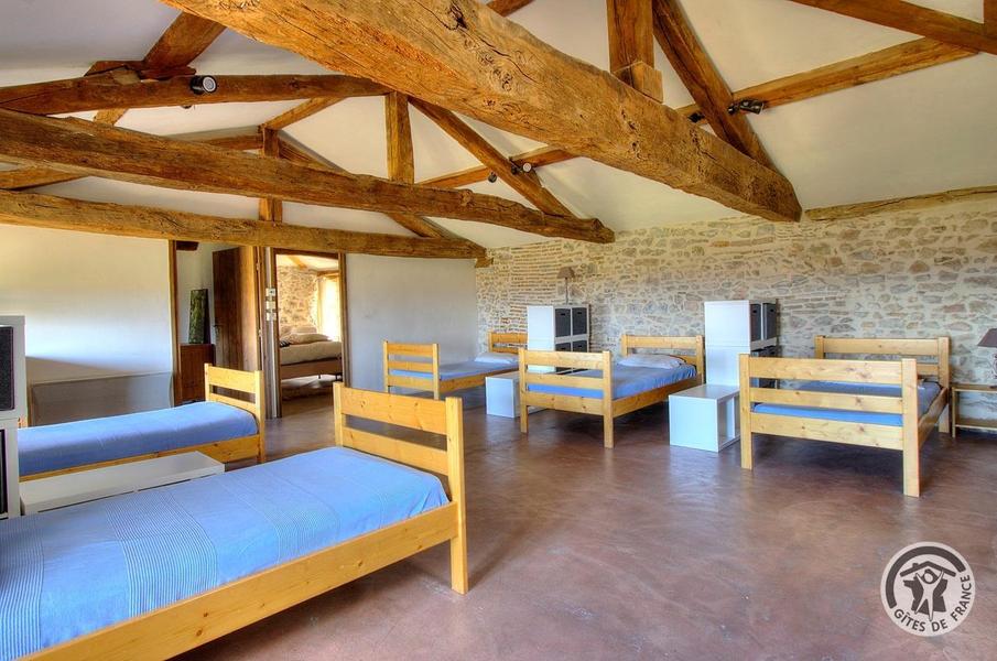 Grand Gîte "Le Vigneron" - 15 personnes - Château des Tours à St Etienne-La-Varenne dans le Beaujolais - Rhône : dortoir au 2ème étage pour 5 personnes et accès aux 2 chambres.