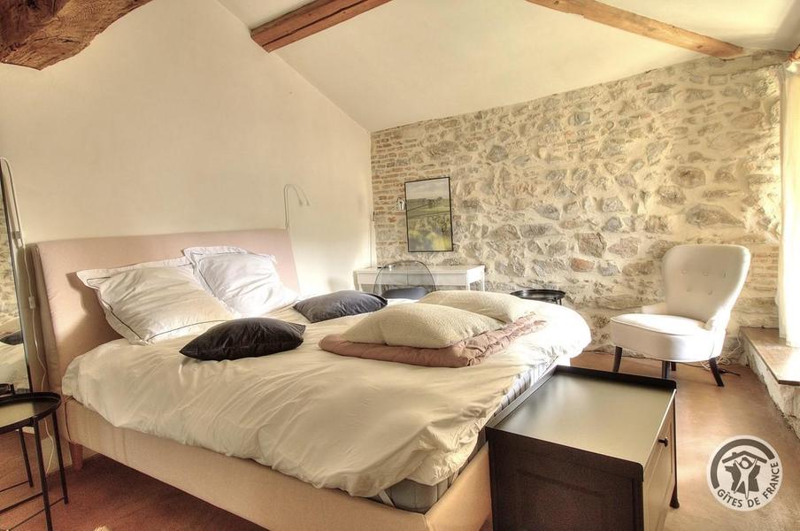 Grand Gîte "Le Vigneron" - 15 personnes - Château des Tours à St Etienne-La-Varenne dans le Beaujolais - Rhône : la chambre pour 2 personnes (1 lit double en 1.60) au 2ème étage.