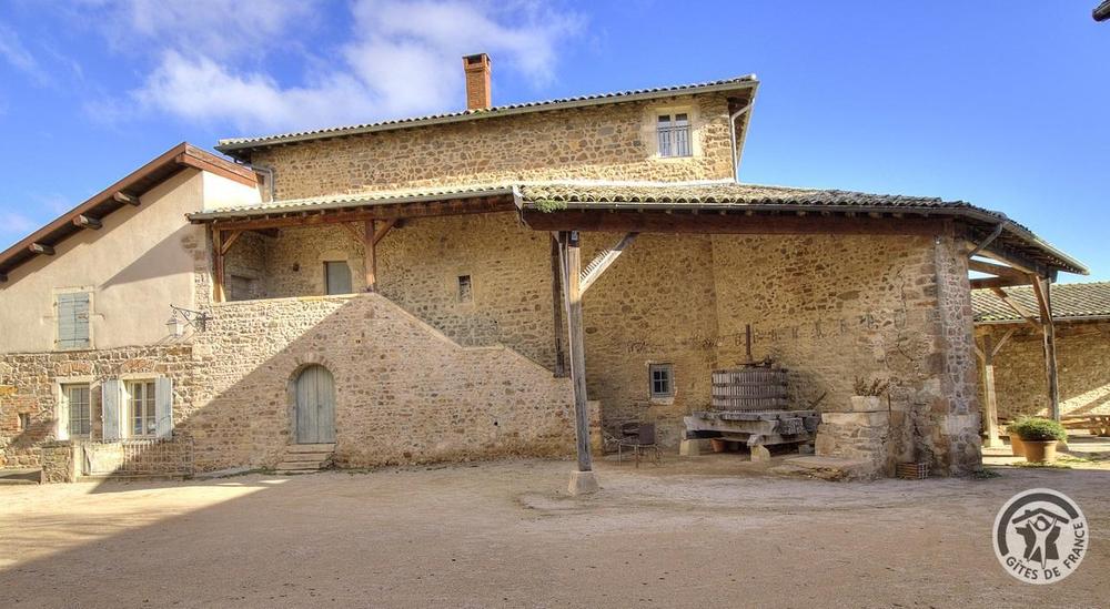 Grand Gîte "Le Vigneron" - 15 personnes - Château des Tours à St Etienne-La-Varenne dans le Beaujolais - Rhône : le Gîte vu depuis la cour du grand Gîte (46 personnes).