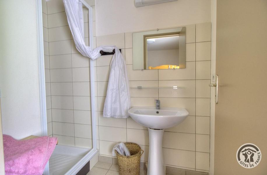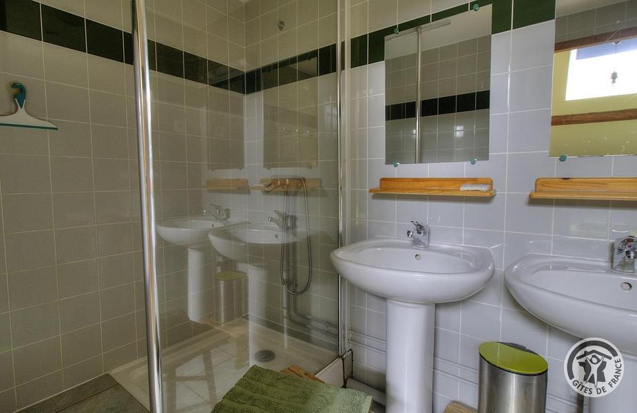 Grand gîte - 32 personnes "L'Étape Cavalière" à Beaujeu - dans le Beaujolais - Rhône : Salle d'eau privée - Chambre "Verte".