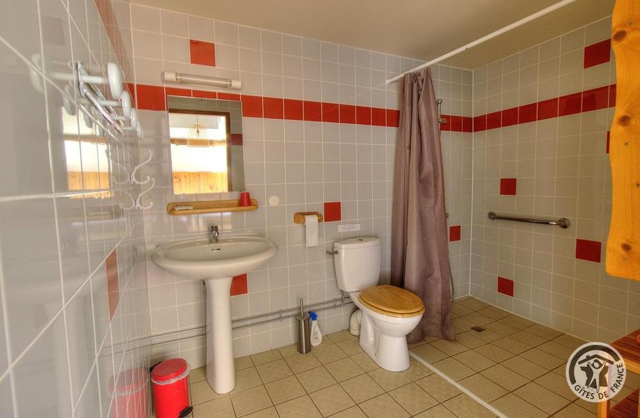 Grand gîte - 32 personnes "L'Étape Cavalière" à Beaujeu - dans le Beaujolais - Rhône : Sanitaires privatifs et accessibles pour les personnes handicapées - Chambre "Rouge".