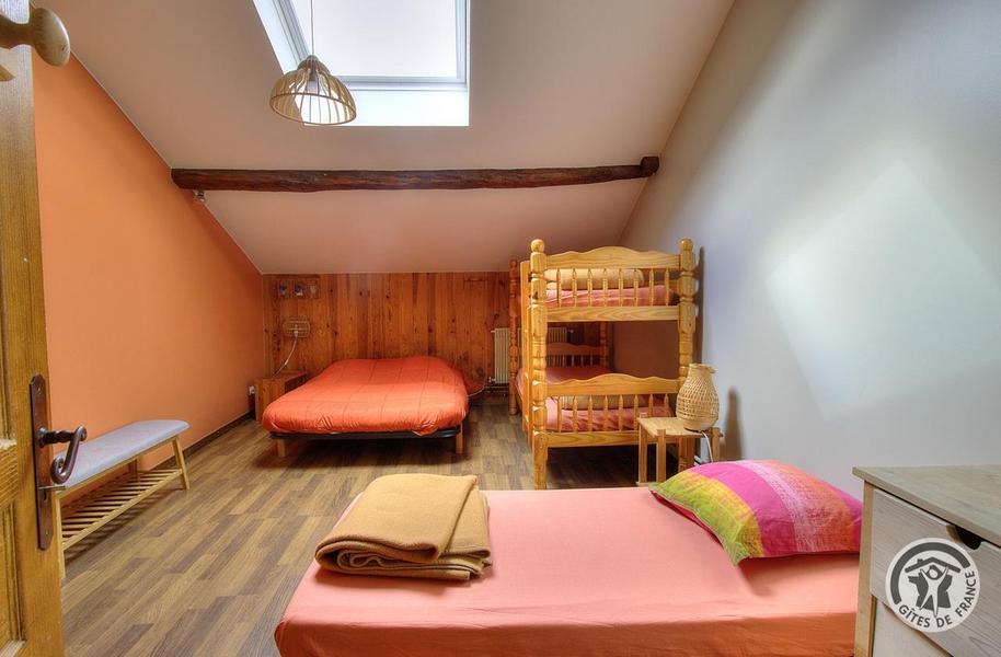 Grand gîte - 32 personnes "L'Étape Cavalière" à Beaujeu - dans le Beaujolais - Rhône : la Chambre "Orange" pour 5 personnes.