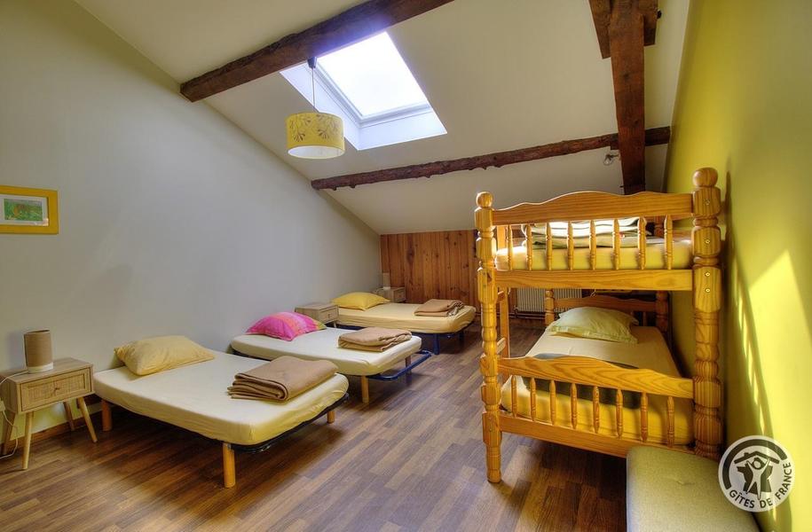 Grand gîte - 32 personnes "L'Étape Cavalière" à Beaujeu - dans le Beaujolais - Rhône : la Chambre "Jaune" avec 5 lits 1 personne.