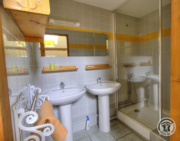 Grand gîte - 32 personnes "L'Étape Cavalière" à Beaujeu - dans le Beaujolais - Rhône : Salle d'eau privée - Chambre "Jaune".