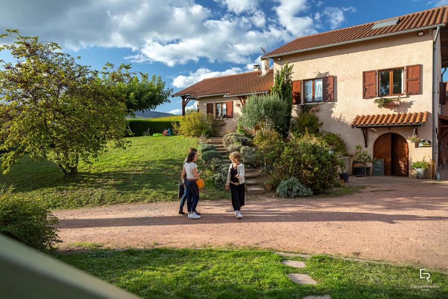 Chambres d'hôtes "Domaine Gilles Coperet" à Regnié-Durette dans le Beaujolais - Rhône : La maison des propriétaires, où le petit déjeuner vous est servi en terrasse ou en intérieur