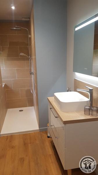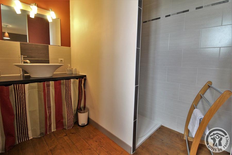 Chambres d'hôtes "Domaine Gilles Coperet" à Regnié-Durette dans le Beaujolais - Rhône : Chambre "Les Glycines", la douche.