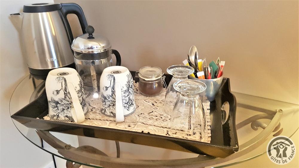 Chambres d'hôtes "Domaine Gilles Coperet" à Regnié-Durette dans le Beaujolais - Rhône : Plateau de courtoisie - Chambre "Les Glycines".