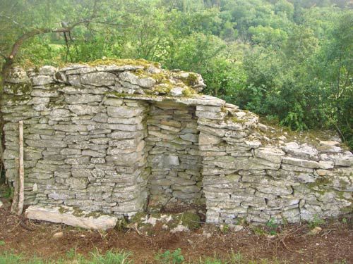 Capettes ou cabanes en pierres sèches Sur l'ensemble du premier plateau, l'histoire a modelé, petit à petit, un paysage de pierres sèches, sillonné de murgers dissimulant d'étranges bâtisses. On observe un bocage de pierres sèches, construit avec le temps et qui abrite un riche écosystème; en effet les murs de pierre ont permis à la végétation de se développer sous forme de haies. Exemple d'architecture rurale, les cabanes sont là, cachées au travers des murs, discrètes, étranges et on les imagine imprégnées de grands secrets. On les appelle communément « Capettes », "les loges", "les cabordes", les "cabanes de berger". On les retrouve dans tous les communes alentour, au détour d'un chemin ou en bordure d'un champ. Elles sont souvent incluses dans un mur de pierres sèches. Ce type de construction est assez rare dans la partie septentrionale de la France mais on en trouve dans le Lot, le Périgord et le Vaucluse. Les paysans retiraient les pierres de leurs champs et les empilaient pour délimiter leurs parcelles. L'agriculture a évolué au profit de l'élevage et ce sont les agriculteurs-éleveurs qui ont alors utilisé les cabanes en gardant leurs troupeaux. Parfois, lorsque les terres étaient éloignées des villages, les paysans aménageaient dans ces murgers une "loge" afin de s'abriter et d'y stocker les outils le temps d'une averse ou d'un repas. De nombreuses cabanes ont été trouvées dans le Jura et le Revermont mais les constructions sont fragiles : ayant perdu leur fonction, elles ne sont plus entretenues et les remembrements en ont fait disparaître en même temps que les murgers qui les abritaient. Ce patrimoine est donc en voie de disparition. De quand datent les cabanes? Mystère. Très peu d'écrits nous parlent de ces cabanes ou de leur date de construction. Les archéologues ont formulé plusieurs hypothèses : elles pourraient remonter à l'époque gauloise voire néolithique. Certains jugent que le principe de construction en pierres sèches remonte au Moyen Age. D'autres qu'elles dateraient d'une période (XIIème siècle) durant laquelle les cultures étaient la règle sur le premier plateau. Enfin, la supposition la plus avancée est celle des grands défrichements précédents le XIXème siècle. Seule certitude donc : elles ont au moins 150 à 200 ans. Les cabanes sont des constructions originales de par leur forme, l'emploi exclusif de pierres plates et fines. Un grand nombre ont une voûte en encorbellement. La base de la cabane est droite puis la voûte est formée par dépassement de la pierre supérieure par rapport à la pierre inférieure. La majorité sont orientées dos au vent dominant. Pour offrir plus de mystère, le sol, la voûte, l'entrée différente de l'une à l'autre. A l'intérieur, des bancs de pierre longent les murs. Suivant la taille, elles peuvent accueillir de 2 à 10 personnes. Les voûtes peuvent être en coupole, droites, en arc brisé, en battière.