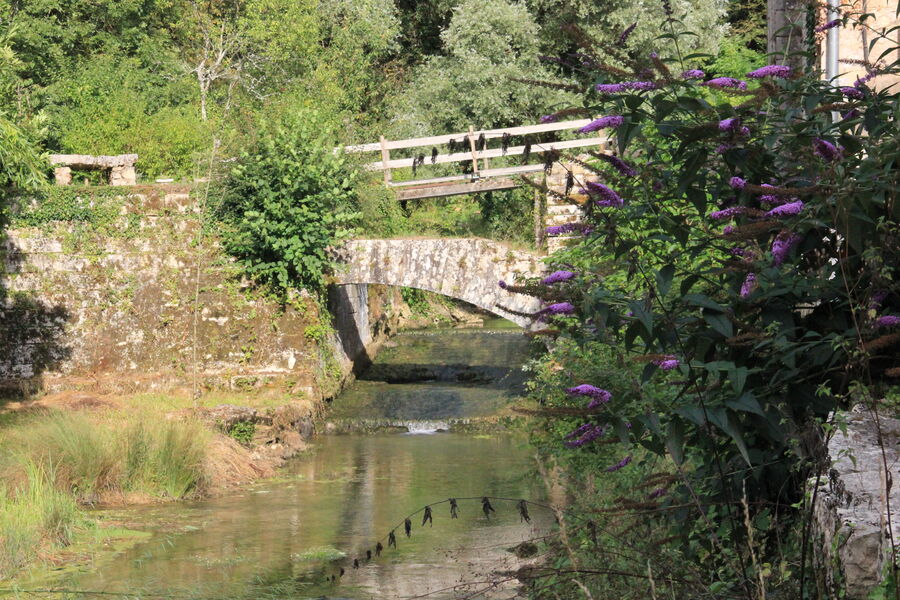 Départ : Lavoir de Verjon / Facile + variante AR Mont Verjon (2,5 km) Rivière longue de 61.8 km avant de se jetter dans la Seille. Cette source de type vauclusien, est une émergence karstique dont les eaux proviennent de Val d'Epy (Jura). Elle alimente par temps de pluie une résurgence situé dans la roche et une cavité appelée "Le Dauphin". En cas de pluviosité exceptionnelle, le Dauphin libère une magnifique chute d'eau à flanc de falaise. « LE SOLNAN » prend sa source à VERJON dans un ravissant site verdoyant. Particulière, cette source, de type vauclusien, est une émergence karstique dont les eaux proviennent du Val d’Epy. Elle alimente par temps de pluie une résurgence située dans la roche et une cavité appelée « Le Dauphin ». En cas de pluviosité exceptionnelle, le Dauphin libère une magnifique chute d’eau à flanc de falaise ; phénomène rare qui fait l’attraction au village. Dans le passé, l’énergie de la rivière alimentait sur place une cartonnerie (transformée en moulin à céréales), une scierie et quatre autres moulins. Tous ont cessé leur activité. A voir en bas du village l’ECLUSE, le LAVOIR (1855), le PONT DE PIERRE VOUTE, la superbe ROUE A AUBE qui servait à remonter l’eau en haut du village. Et n’oubliez pas d’arpenter les ruelles de ce village typiquement revermontois aux maisons de cavets en pierre. Perchée en haut du village, l’EGLISE ST HIPPOLYTE, inscrite au titre des Monuments Historiques, sa chapelle des Seigneurs (de style renaissance) restaurée à l’identique, son triptyque et sa Vierge en pierre. Sur ce sentier, une variante est proposée aux plus courageux d’entre vous pour un aller-retour au MONT VERJON, point culminant de la commune à 498 m d’altitude. Remarquables points de vue sur la plaine de la Bresse et le Mâconnais.