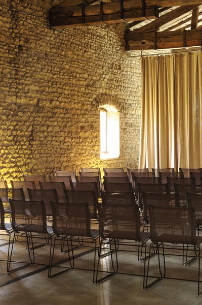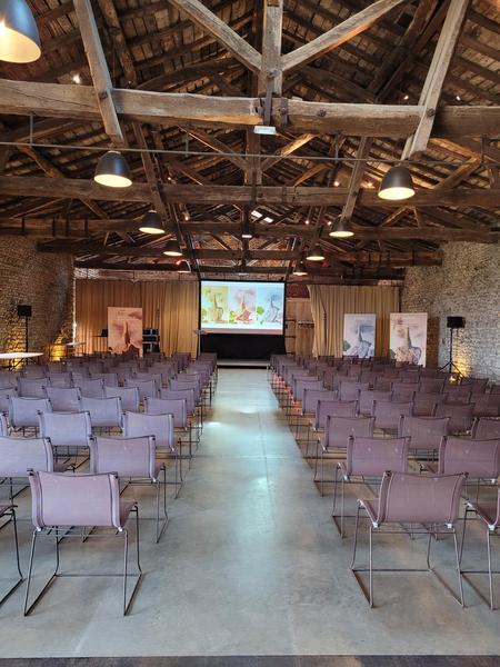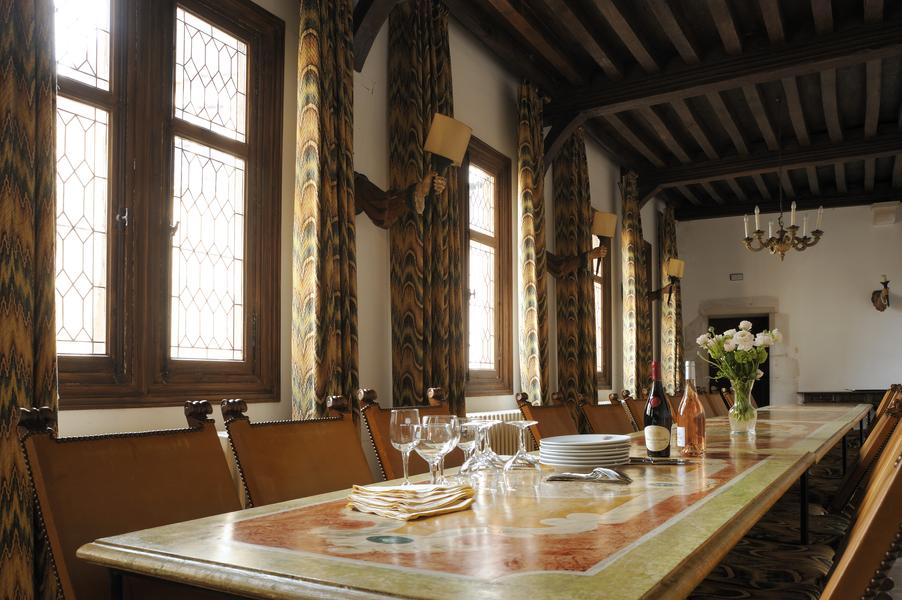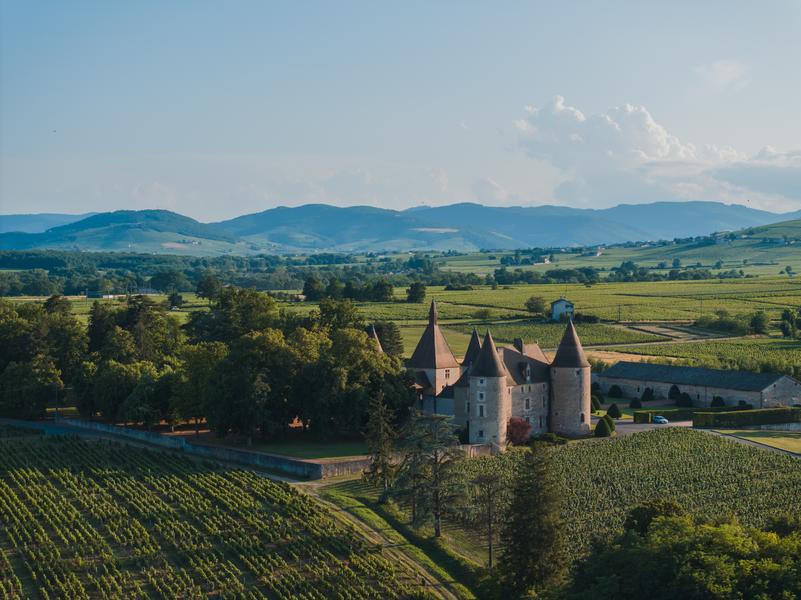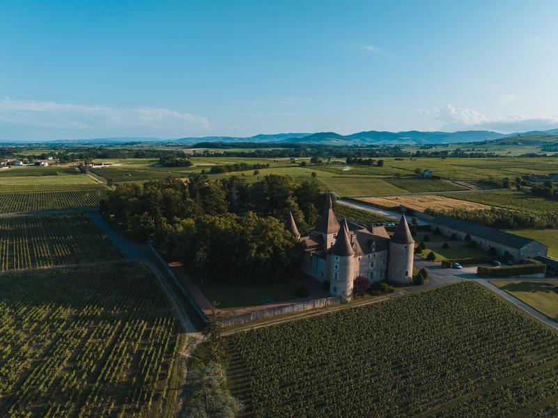 Situé à Corcelles en Beaujolais, à 35 mn au nord de Lyon et à 15 mn des sorties d'autoroute Mâcon Sud et Belleville/Saône, son cadre exceptionnel offre une vue panoramique sur les coteaux du Beaujolais. Le château, édifié au XVe siècle et classé monument historique, le parc majestueux, les espaces extérieurs, merveilleux témoins de l'histoire passée, vous plongent dans l'atmosphère sereine de ce lieu mythique. Le parc du château, orné d'arbres centenaires et d'une grande pelouse centrale, peut accueillir cocktail ou buffet en plein air, à l'ombre des arbres. L'ancien chai du château offre un espace de 600 m2 pouvant accueillir jusqu'à 450 personnes pour un dîner assis et 600 personnes pour un cocktail. De grands rideaux de lin permettent de moduler les espaces selon les besoins. Les trois salons du château en enfilade et la salle à manger dans l'aile renaissance du château, situés au premier étage, peuvent accueillir à la journée des petits séminaires jusqu'à 30 personnes. La salle de réunion est équipée de tableau paper board, les deux salons contigus peuvent être utilisés pour la pause café ou apéritif, ou pour d'autres groupes de travail. La salle à manger dans la galerie à colombages, peut accueillir jusqu'à 24 personnes pour un déjeuner ou un dîner assis.