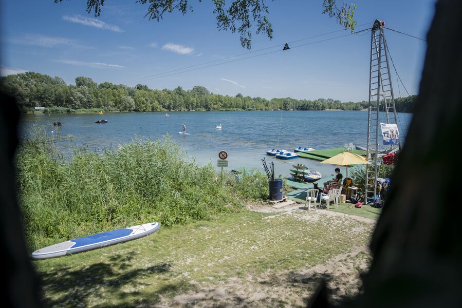 Grand Téléski Nautique de 650m ! Base de loisirs avec aquapark, wakeboard, ski nautique, bouée tractée, paddle... 450 m2 de terrain beach : foot, volley, rugby, tennis, pétanque. La Guinguette : Restauration/Bar, soirées, hamac et plage.