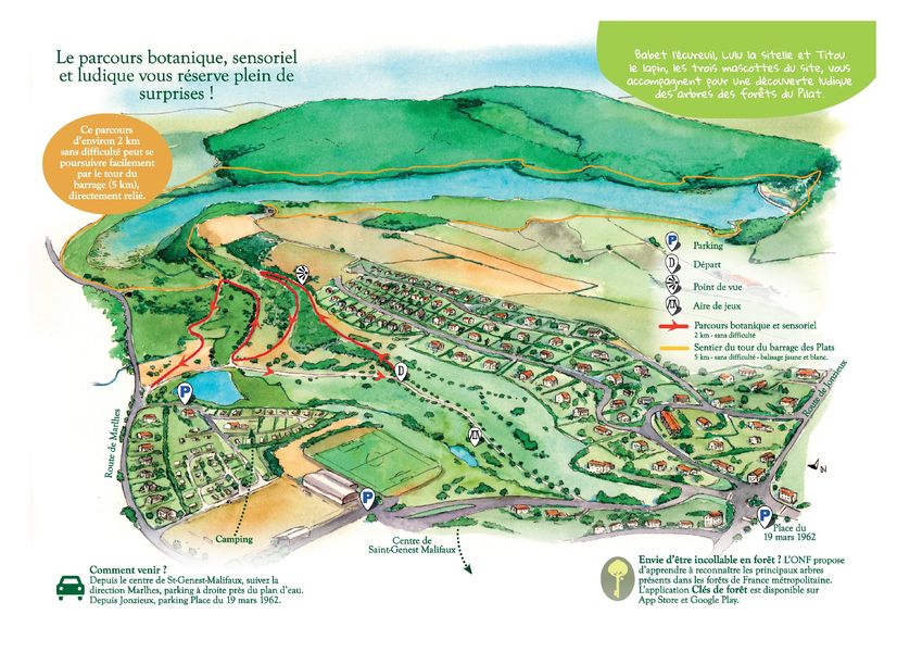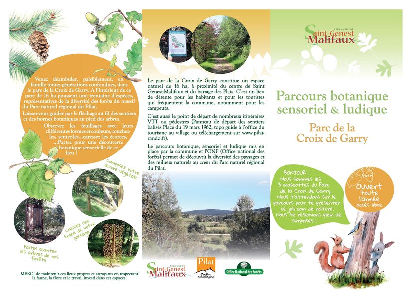 Sentier avec poteaux explicatifs et installations sensorielles et ludiques qui vous invitent à découvrir la flore de moyenne montagne. Pour sillonner ce parcours suivez Babet l'écureuil, Lulu la sitelle et Titou le lapin ! Dépliant à l'office de tourisme.