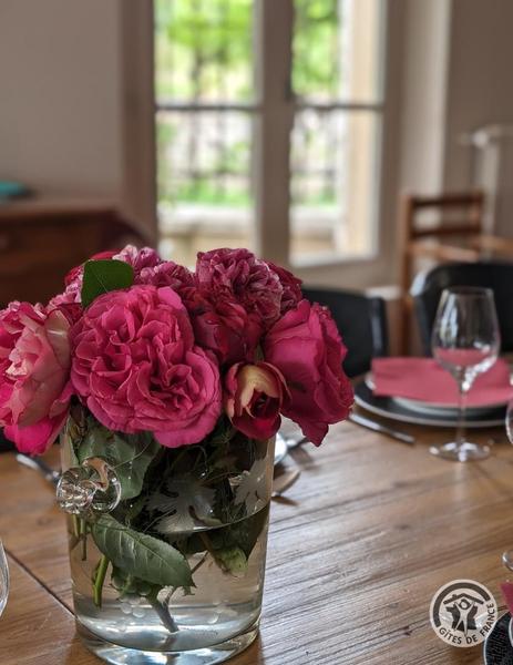 Grand Gîte "Zaccharie" pour 15 personnes au Domaine "Château Thivin", Mont Brouilly, dans le Beaujolais - Rhône : table dressée.