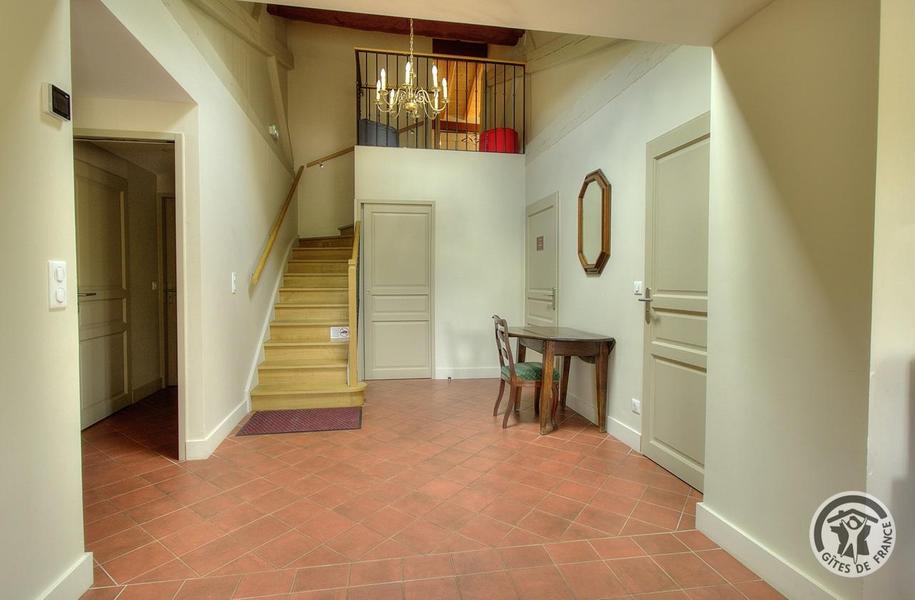Grand Gîte "Zaccharie" pour 15 personnes au Domaine "Château Thivin", Mont Brouilly, dans le Beaujolais - Rhône : le dégagement au rez-de-chaussée ouvrant sur le séjour.