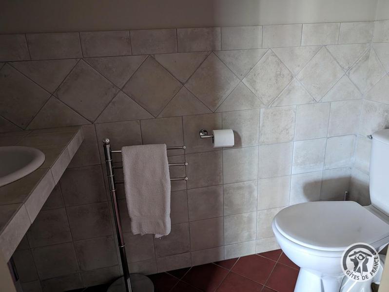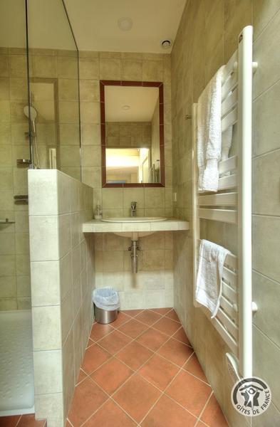 Grand Gîte "Zaccharie" pour 15 personnes au Domaine "Château Thivin", Mont Brouilly, dans le Beaujolais - Rhône : la salle d'eau au rez-de-chaussée.