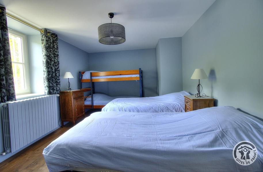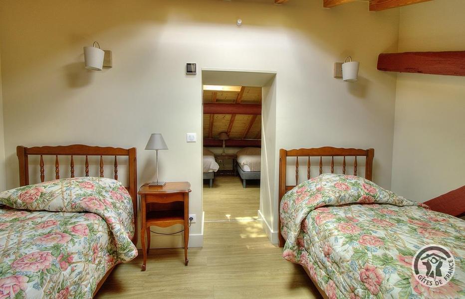 Grand Gîte "Zaccharie" pour 15 personnes au Domaine "Château Thivin", Mont Brouilly, dans le Beaujolais - Rhône : la Chambre "Gamay" - 4 personnes à l'étage.