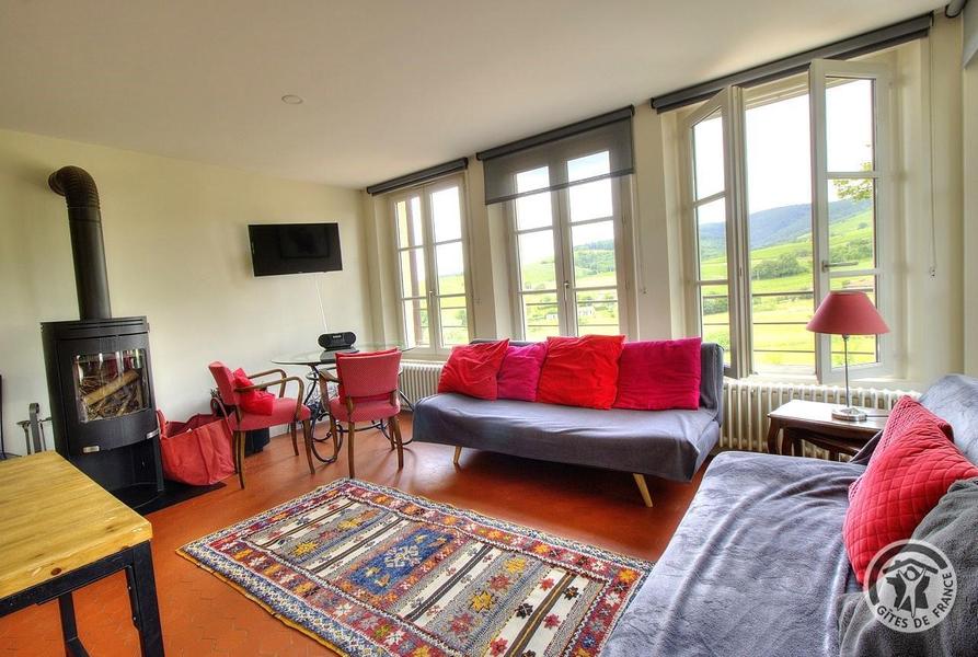 Grand Gîte "Zaccharie" pour 15 personnes au Domaine "Château Thivin", Mont Brouilly, dans le Beaujolais - Rhône : le grand séjour au rez-de-chaussée.