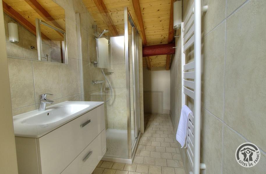 Grand Gîte "Zaccharie" pour 15 personnes au Domaine "Château Thivin", Mont Brouilly, dans le Beaujolais - Rhône : Salle d'eau dans la Chambre "Gamay" - 4 personnes à l'étage.