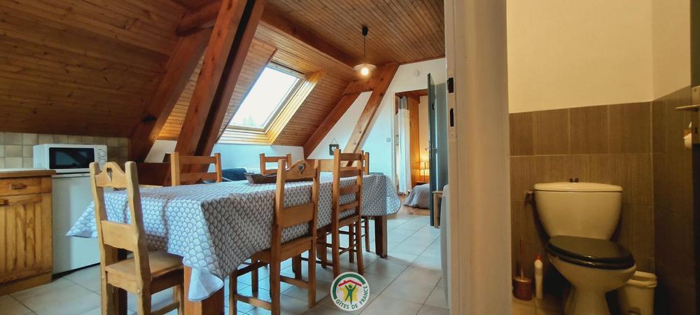 Ski de piste à Gresse en Vercors à 1 km. Ski de fond & raquettes sur pl. Sentiers randos vtt & pédestres au départ du gîte. Bergerie à prox. Lac Monteynard : 20km Bienvenue à la ferme " du Grand Veymont ". Nous vous accueillons face au balcon est du Vercors pour vous faire découvrir la vie agricole en montagne. Nous vous proposons : Toute l'année en vente directe au magasin : les produits transformés du jardin (Sirop, confiture, tisane, huile aromatisée, vinaigre aromatisé, pesto, sorbets…). Ferme découverte et pédagogique avec visite du jardin en permaculture (visite gratuite pour les locataires des gîtes). L'été : location d'ânes, bar à sorbets, tisanes … Au coeur du Parc Naturel du Vercors, venez vous ressourcer dans 1 cadre magnifique propice à la détente, aux activités de pleine nature & découvrir la vie & les produits de la ferme au rythme des saisons. Gîte mitoyen à la grange des propr. avec vue panoramique sur la chaine du Vercors, espace cuisine ouvert sur le salon, Ch. (lit double & 1 lit 1 pers.), s.d'eau, wc. Ch. élect. l-linge commun, tv, m-ondes. Terrasse priv. exposée plein sud (salon de jardin, barbecue), terrain non clos, parkin
