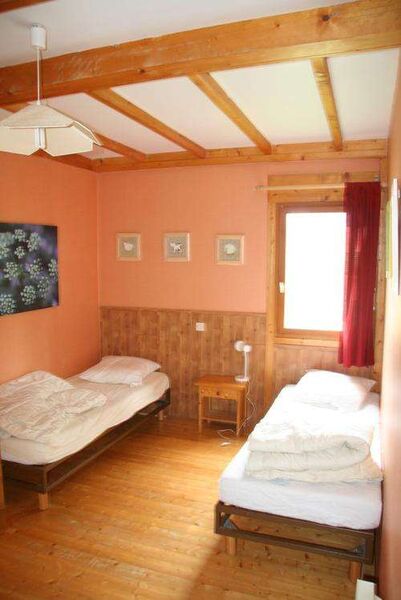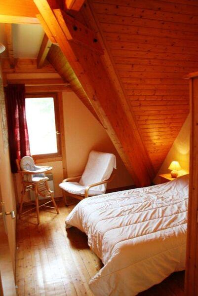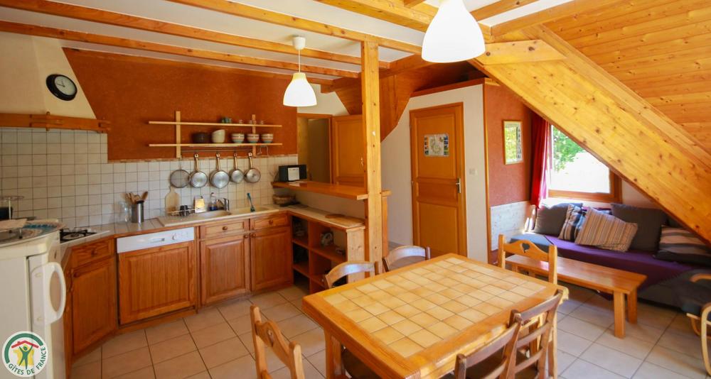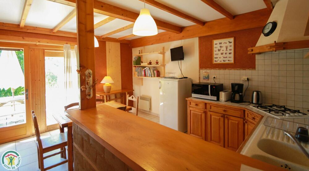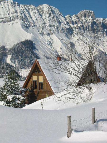 ss. tv. Terrasse exposée plein sud (salon de jardin, barbecue), terrain non clos. Ski de piste à Gresse en Vercors : 1km, ski de fond & raquettes sur pl. Sentiers randos vtt, pédestres. Bergerie Bienvenue à la ferme " du Grand Veymont ". Nous vous accueillons face au balcon est du Vercors pour vous faire découvrir la vie agricole en montagne. Nous vous proposons : Toute l'année en vente directe au magasin : les produits transformés du jardin (Sirop, confiture, tisane, huile aromatisée, vinaigre aromatisé, pesto, sorbets…). Ferme découverte et pédagogique avec visite du jardin en permaculture (visite gratuite pour les locataires des gîtes). L'été : location d'ânes, bar à sorbets, tisanes … Au coeur du Parc Naturel du Vercors, venez vous ressourcer ds 1 cadre magnifique propice à la détente, aux activités de pleine nature & découvrir la vie & les produits de la ferme au rythme des saisons. Gîte aménagé de plain-pied dans 1 chalet, en mitoyenneté au logt des propr. avec vue panoramique sur la chaine du Vercors. Espace cuisine ouvert sur le salon avec accès direct sur la terrasse et jardin, Ch.1 (1 lit 2 pers.), Ch.2 (3 lits 1 pers.), s.d.b., wc. Ch.élec., l-linge collectif, l-vai