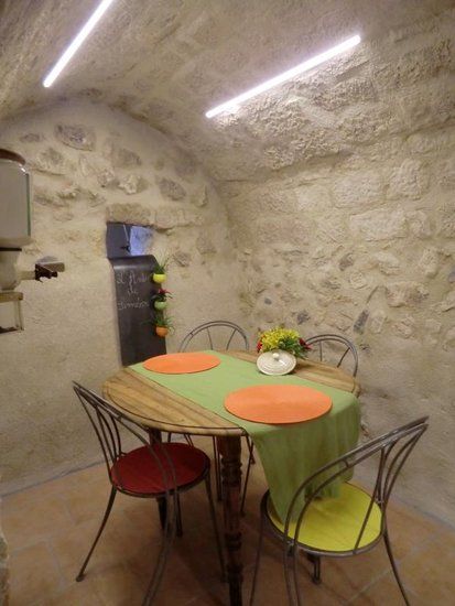J'ai utilisé pour sa création les fondations de la maison - anciennes caves aménagées en pièces voutées - où se dégagent à l'intérieur les énergies de la pierre, du métal et du bois. La chaleur d'un éclairage aux multiples couleurs réchauffe ce lieu. Défini par son style singulier - moderne et ancien - mon intention étant de donner un sens à chaque objet, chaque tissus, chaque mobilier. coin cuisine, salle d'eau ouverte, coin salon et couchage 2 personnes. Hébergement situé sur le parcours de la ViaRhôna. Centre de Valence à 10 min. Petits animaux accueillis sur demande.