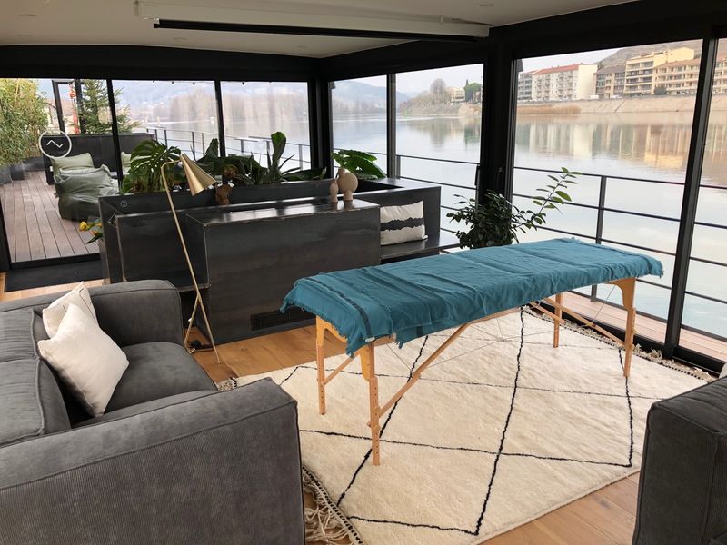Le concept LA PENICHE [Bed and Bicycle] est l'idéal pour des escales fluviales d’exception le long du Rhône, sur la voie verte « ViaRhôna », à destination d' une clientèle « escale » et itinérante à vélo. Elle comprend 5 cabines traversantes de 20m2 (dont l'une peut accueillir une 3ème personne dans un lit 1 place en mezzanine ). Elles occupent l'ancienne cale et se situent légèrement au dessous du niveau du fleuve. Les larges hublots de chaque côté du lit participent à la sensation de flottement et de calme qui gagnent les corps et les esprits. Chaque cabine est équipée d'une salle de bain douche confortable. Possibilité d'installer un hamac pour profiter pleinement des bercements de l'eau. En toute discrétion les hôtes pourront jouir sur le pont terrasse d'un bain nordique en encore d'un spa ( + sauna et table de massage sur réservation ) en "sous sol". Jardin d'hiver, cuisine équipée invitent à profiter de l'instant présent en compagnie des autres hôtes. Les cyclistes pourront laisser leurs vélos dans un container sécurisé ( QR code et caméra de surveillance ) sur le quai. C'est une péniche "connectée" avec QR codes d'accès aux chambres et aux espaces communs, connexion wifi haut débit + systèmes Air Play.