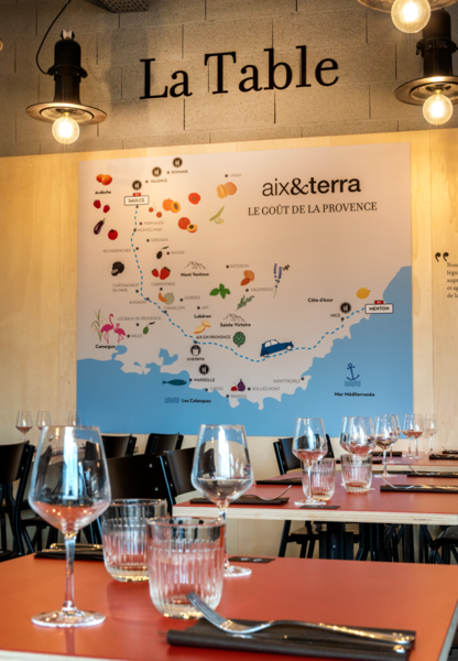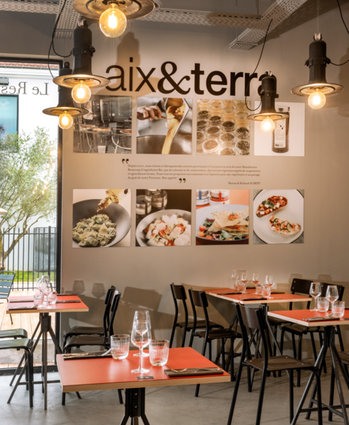 La Table-Epicerie Aix&terra de Romans-sur-Isère à Marque Avenue met du soleil dans votre assiette ! Venez vivre une expérience culinaire Provençale ! Aix&terra met à l'honneur les goûts et les ingrédients du Sud en les associant dans des recettes originales et savoureuses. Notre espace de restauration propose 40 couverts et une terrasse ensoleillée. Au menu, vous trouverez des plats de saison, des créations originales du Chef conseil Julien Alano et des classiques incontournables tels que nos délicieuses ravioles. Vous avez la possibilité de les savourer sur place ou à emporter ! Vous pouvez également retrouver nos produits dans l’épicerie ou bien sur la boutique en ligne (via le lien ci-dessous) et en faire le plein afin de prolonger votre expérience gustative chez vous avec votre famille et vos amis. Lien de la boutique en ligne : https://www.aixetterra.com/.