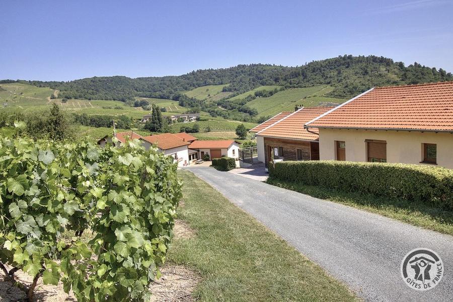 Grand Gîte - 12 personnes - "l'Artisan Vigneron" sur un Domaine viticole comportant 3 Gîtes à Fleurie dans le Beaujolais des Crus - vignoble - Rhône : l'arrivée aux gîtes.