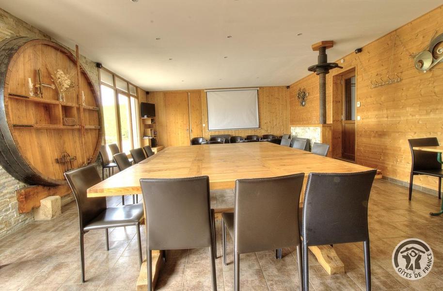 Grand Gîte - 12 personnes - "l'Artisan Vigneron" sur un Domaine viticole comportant 3 Gîtes à Fleurie dans le Beaujolais des Crus - vignoble - Rhône : l'espace repas (au rez-de-chaussée).