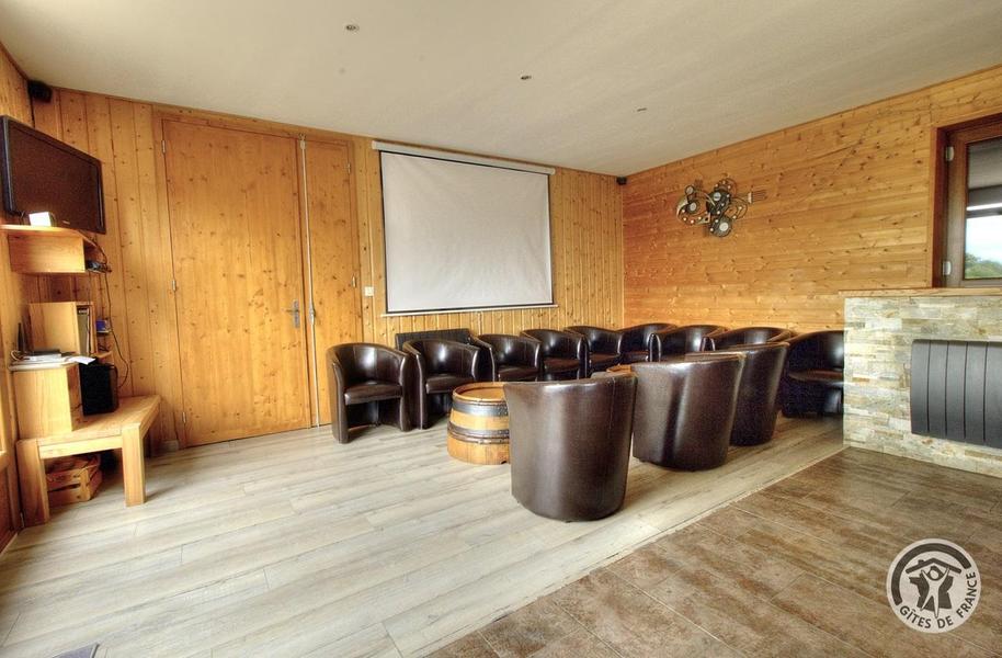 Grand Gîte - 12 personnes - "l'Artisan Vigneron" sur un Domaine viticole comportant 3 Gîtes à Fleurie dans le Beaujolais des Crus - vignoble - Rhône : coin salon avec écran et TV.