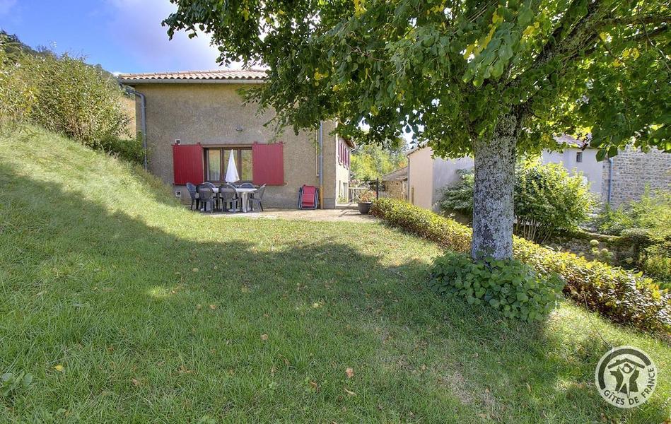 Gîte de Haute-Combe à Juliénas dans le Beaujolais (vignobles) - Rhône : le jardin et terrasse.
